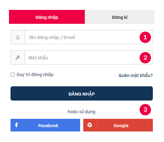 - 3 Duy trì đăng nhập: Website sẽ lưu trạng thái đăng nhập trên thiết bị hiện tại, bạn không nên sử dụng chức năng này khi đăng nhập ở các thiết bị dùng chung, công cộng…