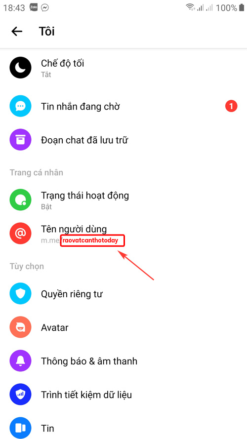 Tên người dùng Messenger
